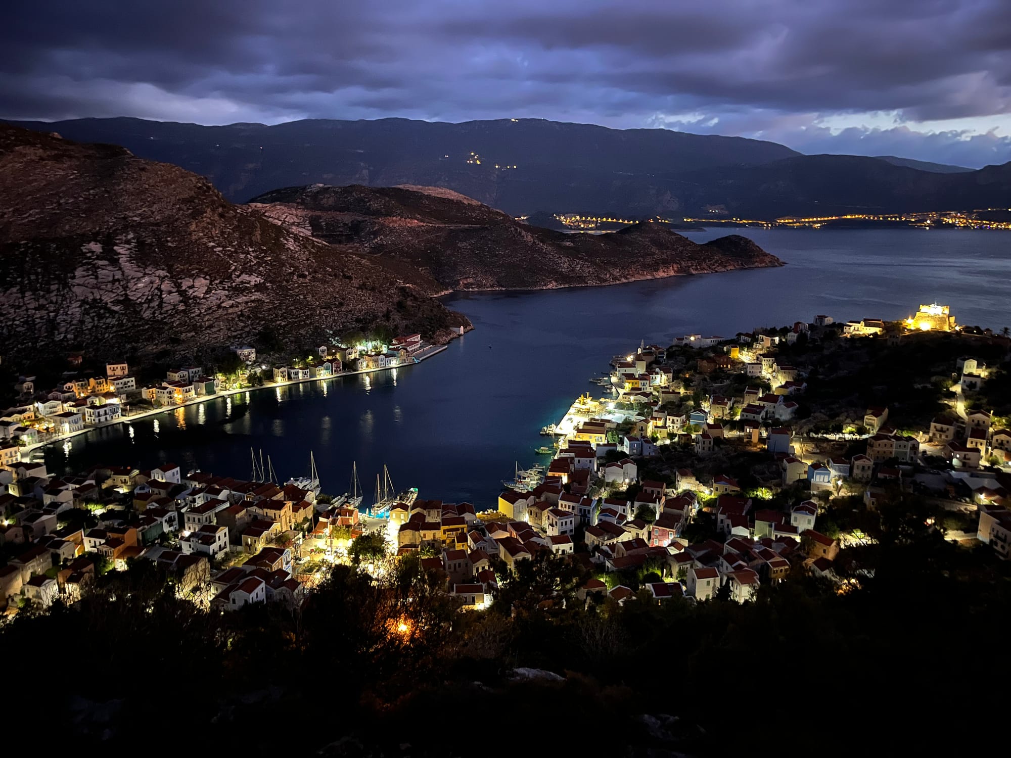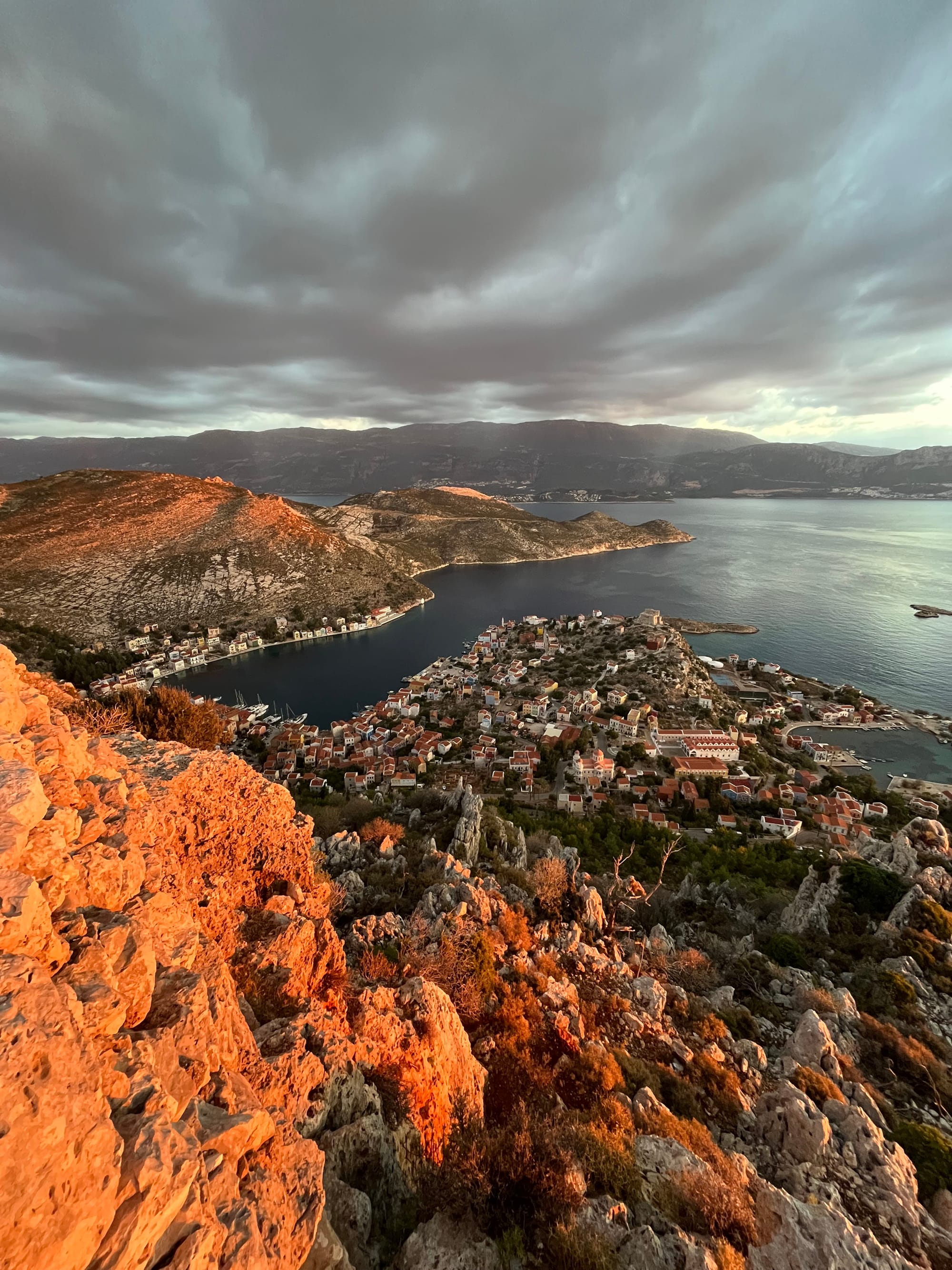 Nach einer mückenreichen Nacht stiegen wir zum Sonnenaufgang auf einen der höchsten Punkte der Insel, mit Blick über Kastellorizo bis nach Zypern. Wir hätten gut noch weitere Tage bleiben können – doch von diesem winzigen Ort sollte unsere Fähre nach Athen ablegen.
