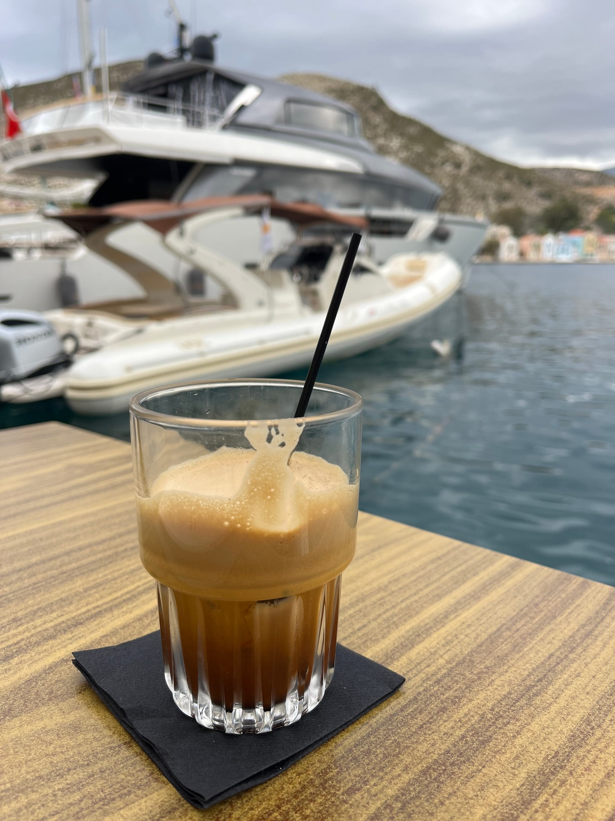 Während wir gerade unseren neuen Lieblingskaffee, Freddo Espresso, genossen (wir hatten also auch die Transition von Tee zu Kaffee vollzogen), fragten wir den Kellner, wo sie denn abfahren würde. „Ihr seht das schon“, sagte er – und er sollte recht behalten.